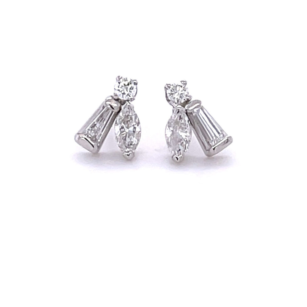 14 Karat White gold & white diamond cluster earring, 1 cm & approximately 3/4 carat total weight.