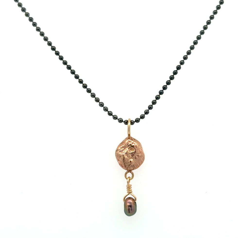 This Love nugget is a one of a kind piece & is all about contrasts in textures. The gold nugget is amorphic while the pearl below is smooth & luminous. The combination creates a necklace that feels organic yet balanced, with a touch of understated luxury.