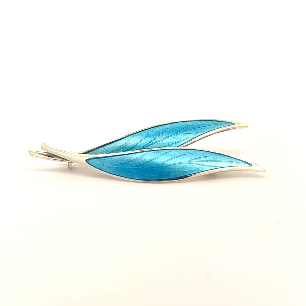 Vintage sea blue enameled brooch in sterling silver